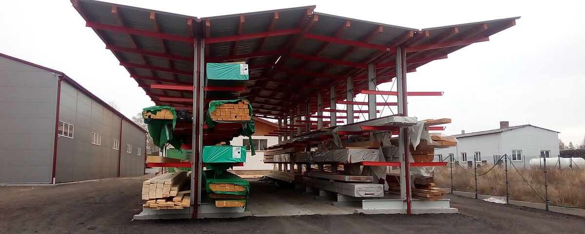 Our cantilever racking with roof is suitable for outdoor use so that your stored goods are adequately protected in all weather conditions and the available space can be used efficiently.