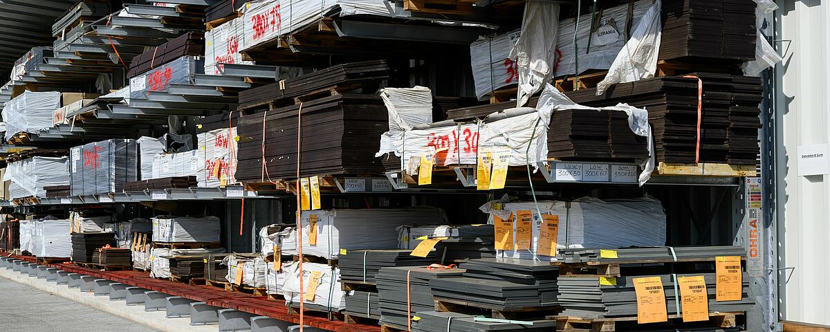 Building materials retailer Henri Benthack opted for robust cantilever and pallet racking made of hot-rolled steel from OHRA for its new site in Neumünster. They offer higher load-bearing capacities, larger spans and are more resistant to impacts than comparable shelving made from sheet metal profiles. A total of 3,400 storage locations in pallet racking and 1,250 linear metres of storage space in cantilever racking were installed. Visualisation made planning easier. The new shelves increase storage capacity, optimise logistics and minimise material damage.