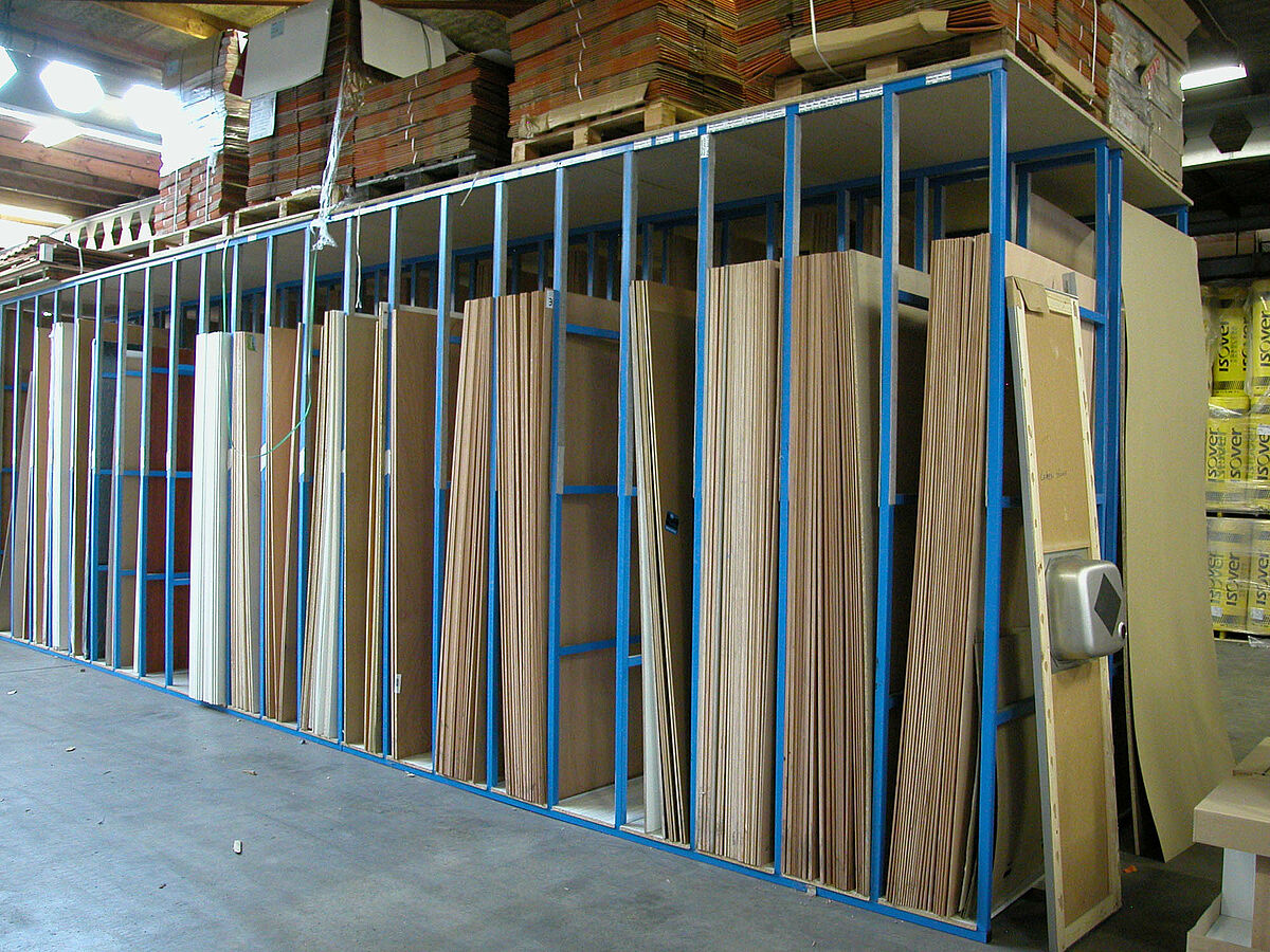 Our sturdy vertical chipboard racking system guarantees high bearing loads and fast handling in the workshop. It is suitable for storing chipboard sheets and material in various qualities and dimensions.