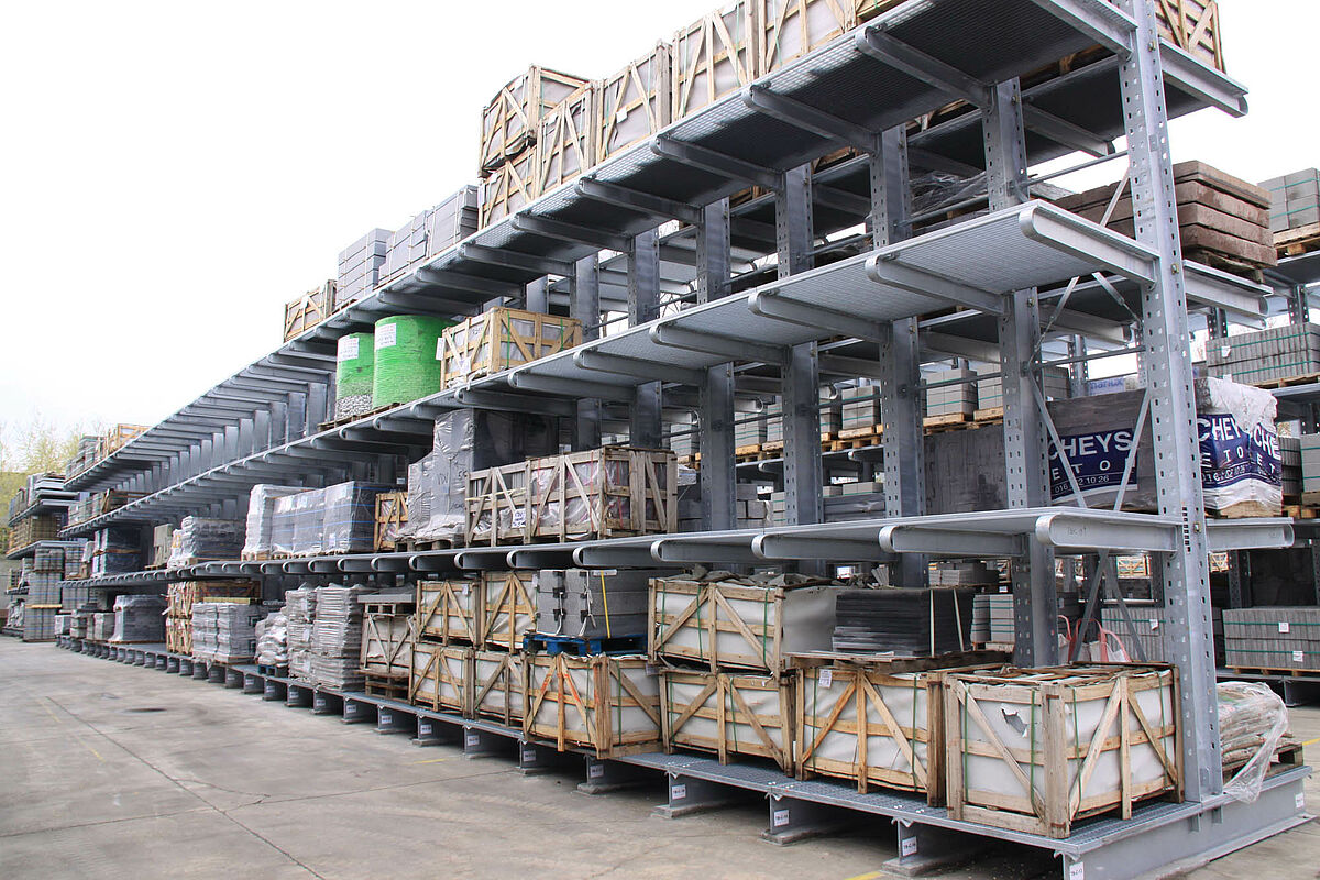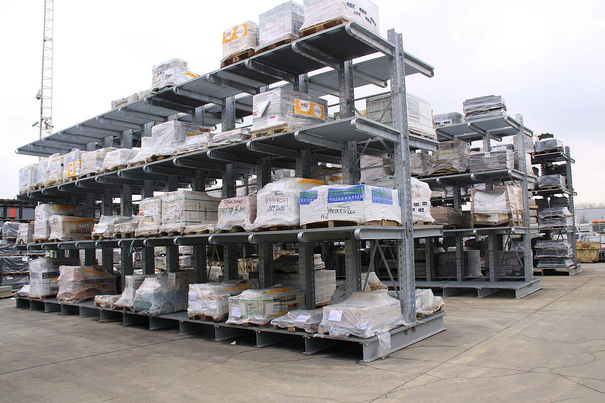 For many years, items such as precast concrete or paving stones, which are not weather-sensitive, were stored on the ground in the outdoor area. However, this form of storage proved ineffective as sales increased and the product range grew: The existing outside areas could not be used optimally, the complexity of the storage facility led to an enormous delays in access to the desired articles while unprotected storage resulted in expensive damage to goods.