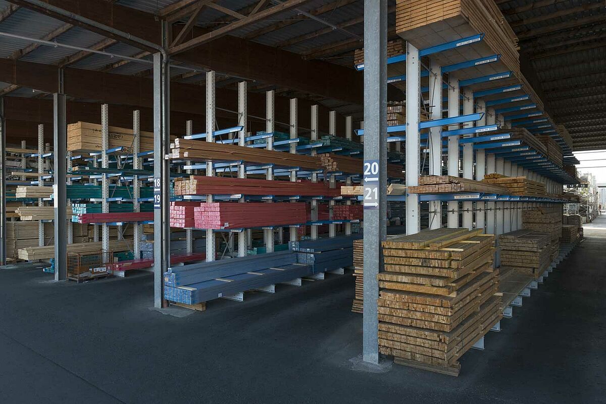 Also, the existing warehouse was to be optimised: It not only supplies the customers, but also four other subsidiaries are supplied with timber and construction materials from this site. As part of the restructuring, Beinbrech decided to replace existing racks with new cantilever racks. With a column height of up to 6.58 metres, they are significantly higher than the old racks and therefore offer more space. In this way, all goods in deliveries can be commissioned quickly and larger quantities stored.