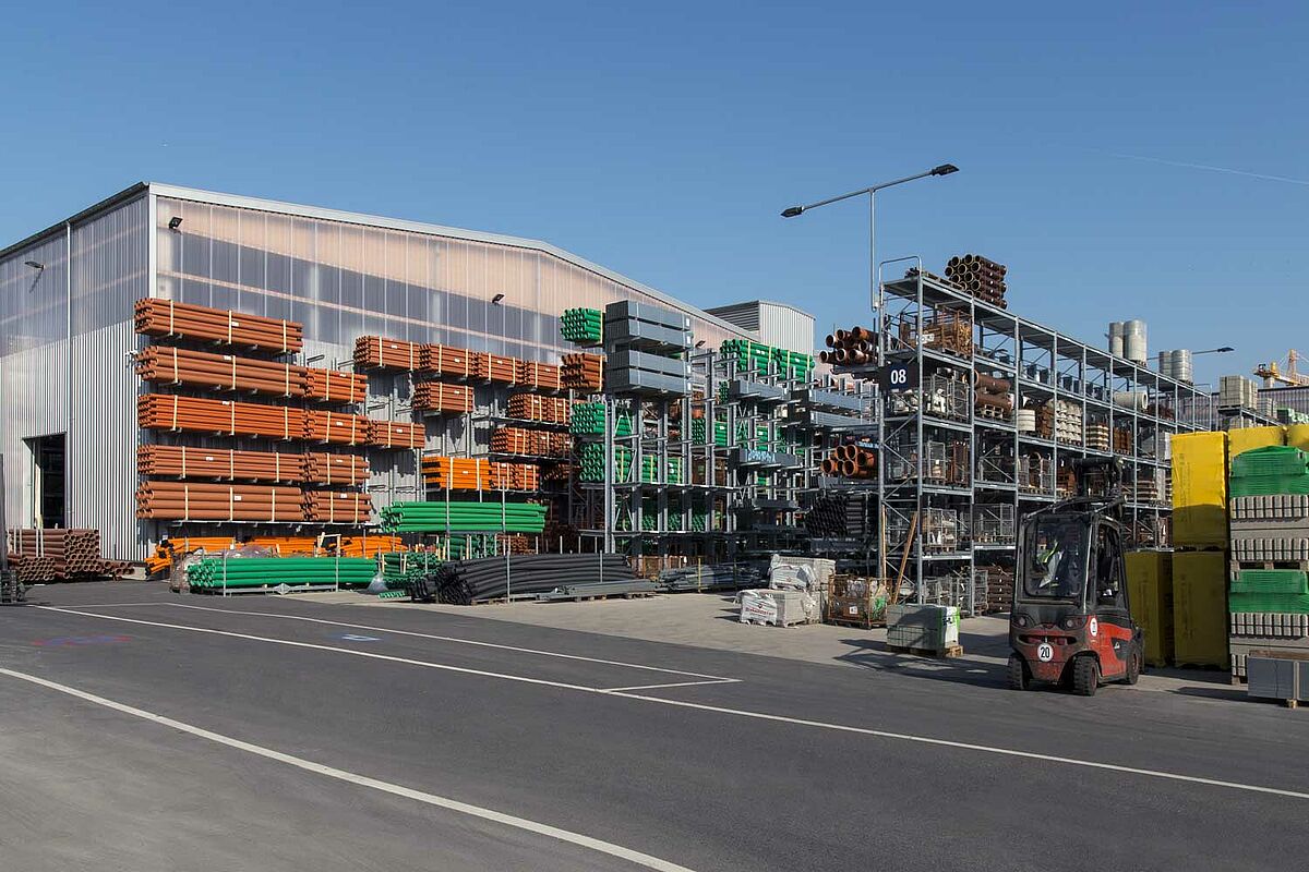 For its business customers, Beinbrech is one of the strongest wholesalers of timbers and construction materials in the region, with an operating and storage area of approx. 100,000 square metres and an efficient logistics concept. To keep it that way, the company decided to restructure the entire site: Sales, exhibition and storage areas have been expanded, customer service optimised, loading zones combined and loading areas expanded.