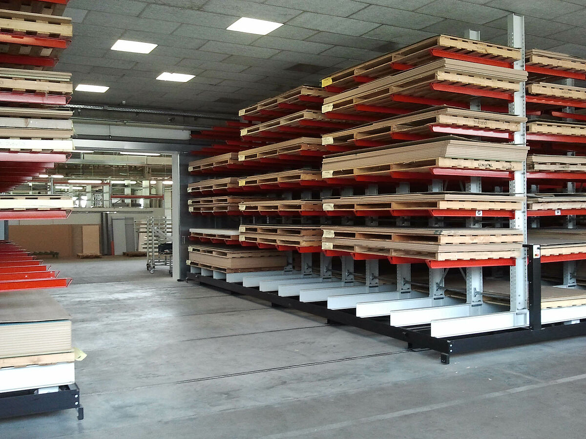 erform, one of the leading manufacturers of postforming parts for the furniture industry, has modernised its warehouse for high gloss coated boards. In order to more efficiently store the sensitive warehouse stock, the former block storage was replaced by a cantilever rack system from OHRA. The racks are mounted on carriages – enabling the greatest use of the warehouse’s available space. In addition, every article can now be accessed directly, significantly reducing order picking times.