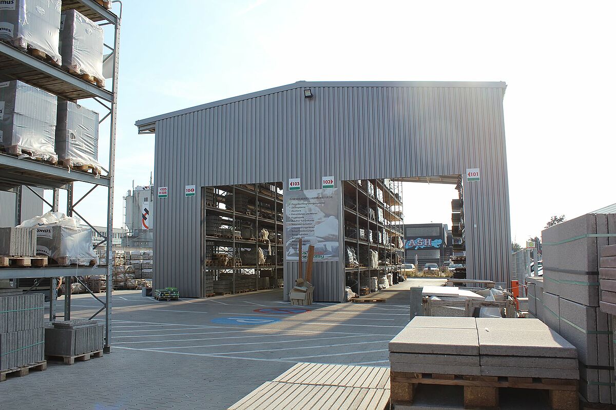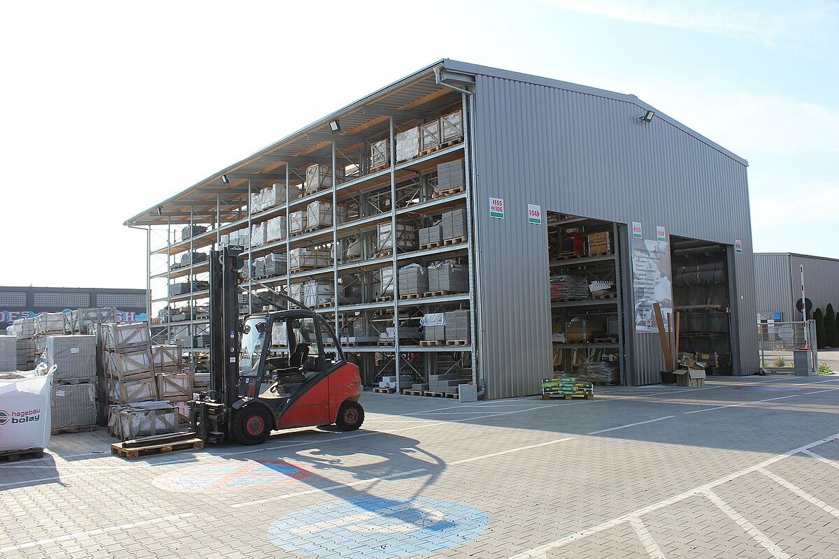 The Hagebau Garden Centre Bolay, located in Rutesheim near Stuttgart, has created a new space for its garden and landscaping products with cantilever and pallet racking from OHRA. Implementation of the new storage area as a partially enclosed building in a rack-clad construction method – in which the rack columns also serve as the load-bearing substructure for roof and wall – made a particularly short construction time possible.