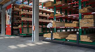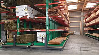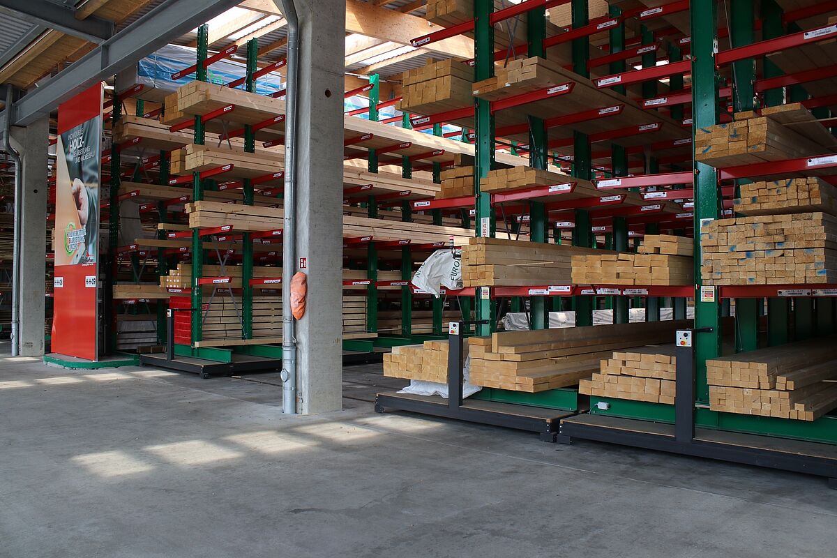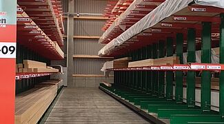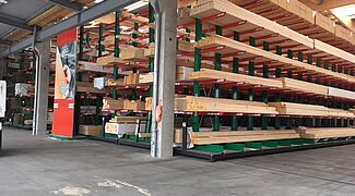 The wood and construction materials retailer HBK Dethleffsen has completely restructured their entire warehouse at the Treia site. The new 5,000-square-metre warehouse was equipped with OHRA cantilever and pallet racks – thanks to a mobile cantilever rack unit and a drive-in rack from the "sister company" Galler, the storage capacity was increased and delivery was accelerated compared to the old warehouse.