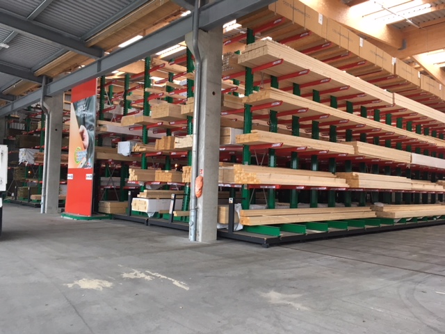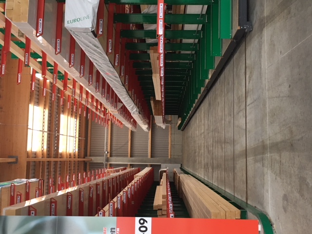 In the warehouse, the construction materials are commisioned according to the orders of craftsmen and private builders. Among the articles stored there, are various construction materials, materials such as 13-metres-long timbers and various bagged goods. To be able to offer customers the widest possible portfolio of goods, the main focus of the modernisation was an increase in storage capacity – until now, the articles were stored exclusively in wide aisle multi-line cantilever racks.