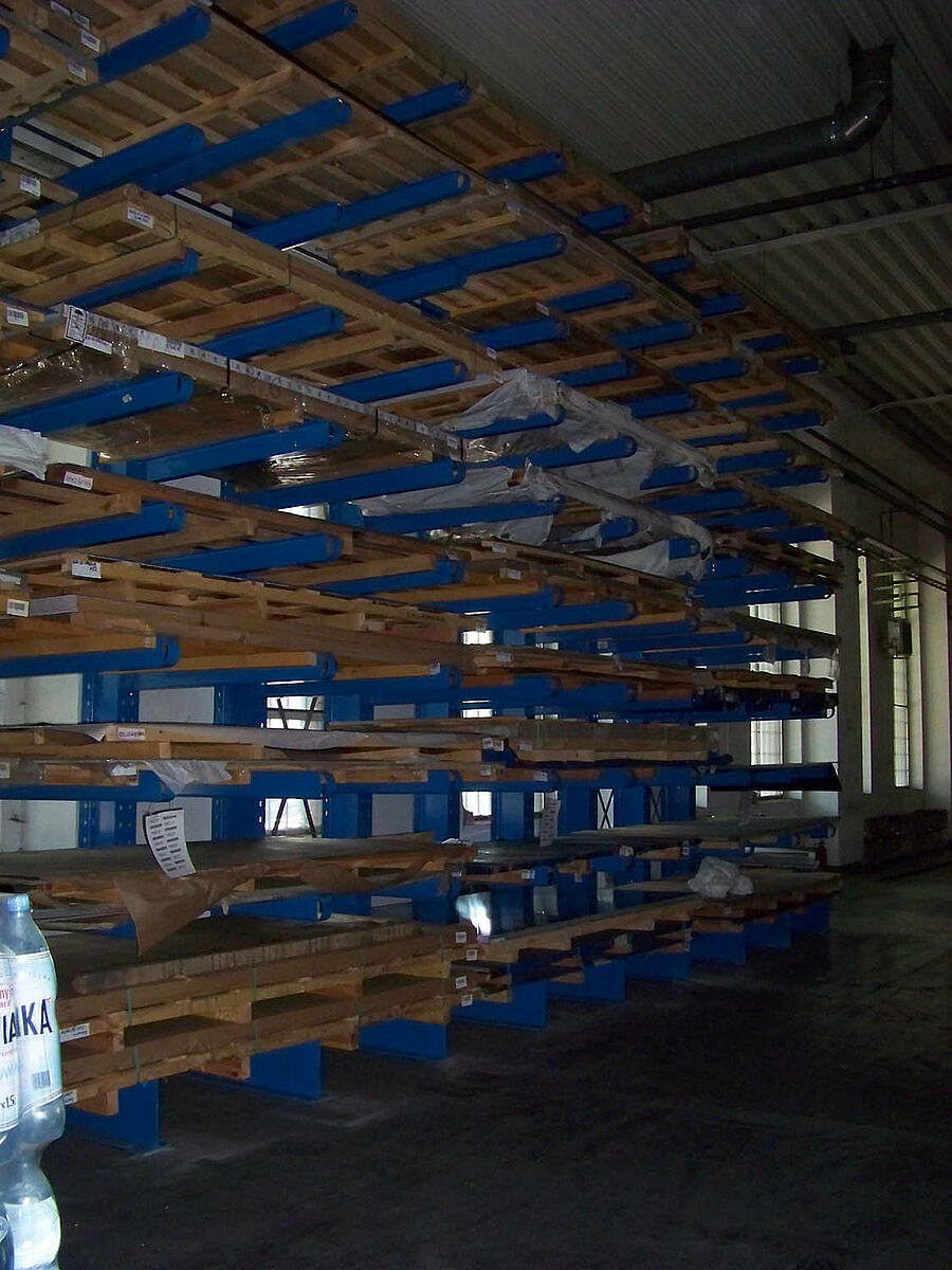 In order to be ever closer to its customers Investa continues to expand its network of branches in Poland. For the storage of its sheet metal with dimensions of up to 3,000 mm long and 1,500 mm wide, as well as profiles and tubing with lengths of up to 6,000 mm, Investa employs cantilever and pallet racks from OHRA. A characteristic feature of the OHRA cantilever racks are the clipped arms in the uprights. They remain flexible and mobile even under high loads and deflect in the event of impact, e.g. with a fork lift truck. Thus, the column and goods remain undamaged. OHRA exclusively employs high quality hot-rolled steel for its rack systems, which yields elastically in the event of impacts, while still retaining its high vertical load capacity. The cantilever columns have a 10mm pitch as standard so can be adjusted to warehouse conditions - no tools are needed for adjusting the cantilever arms.