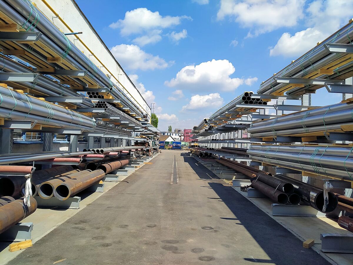Mebatex has an extensive product portfolio and therefore a wide range of pipes for manufacturing the rollers are held in stock. New products, and the growing business eventually demanded more storage capacity for the steel, stainless steel and thick-walled pipes. For this reason, the company decided to change the previous ground storage to storing pipes and tube bundles in cantilever racks from OHRA.
