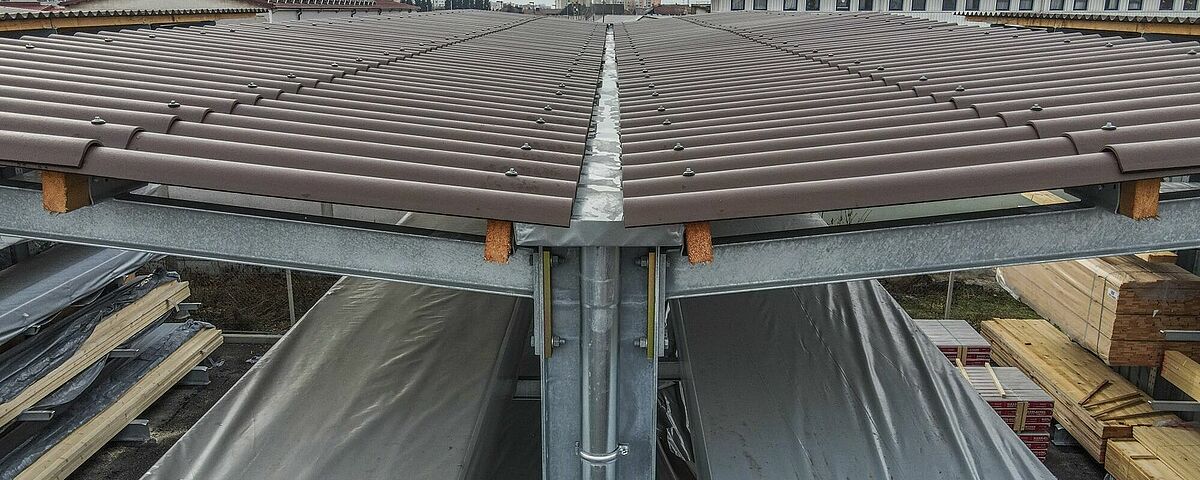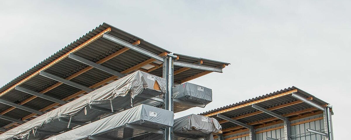 To simplify access to the materials and to make the entire storage and retrieval process more efficient, Obenauf decided to equip the yard with cantilever racking from OHRA. The company has already been using racking systems from the European market leader for cantilever racking for several years. OHRA installed two rows of single-sided and two double sided racks for the yard. On six storage levels and with 1.25 metre long, clip in cantilever arms, they offer significantly more storage space than would be possible with floor storage. Roof beams are mounted at the top of the columns; the two-metre-deep roof with an incline of 6 degrees protects the stored goods from the weather.