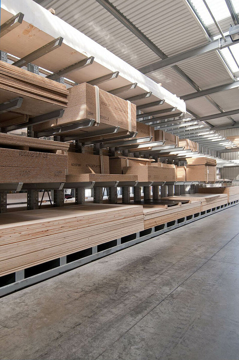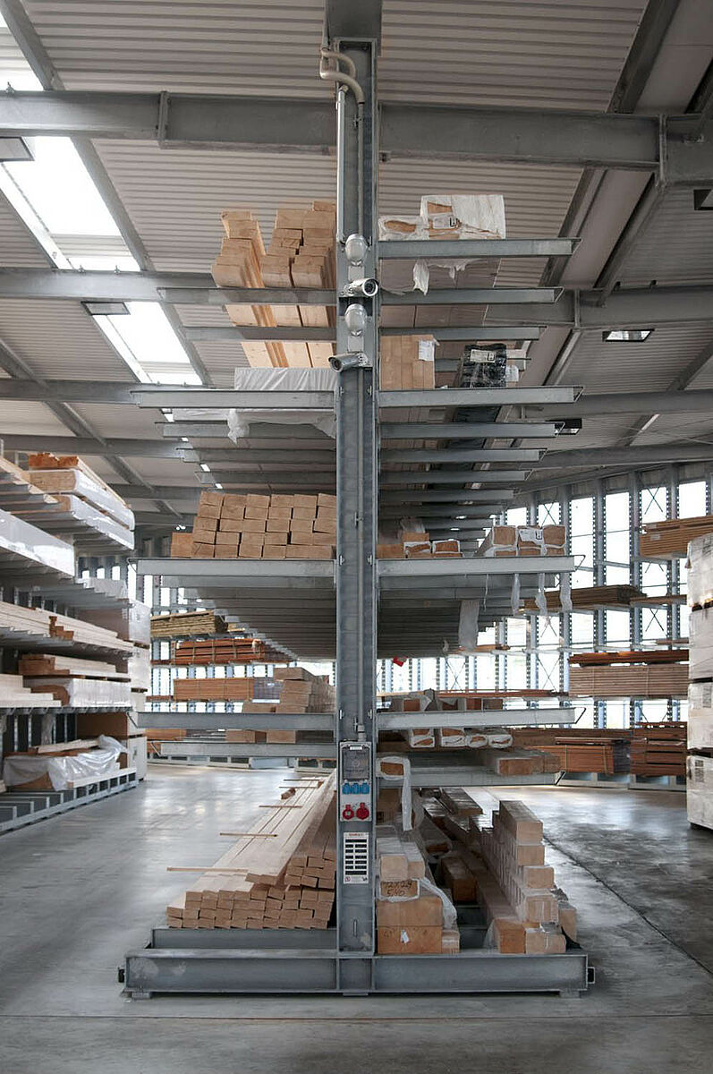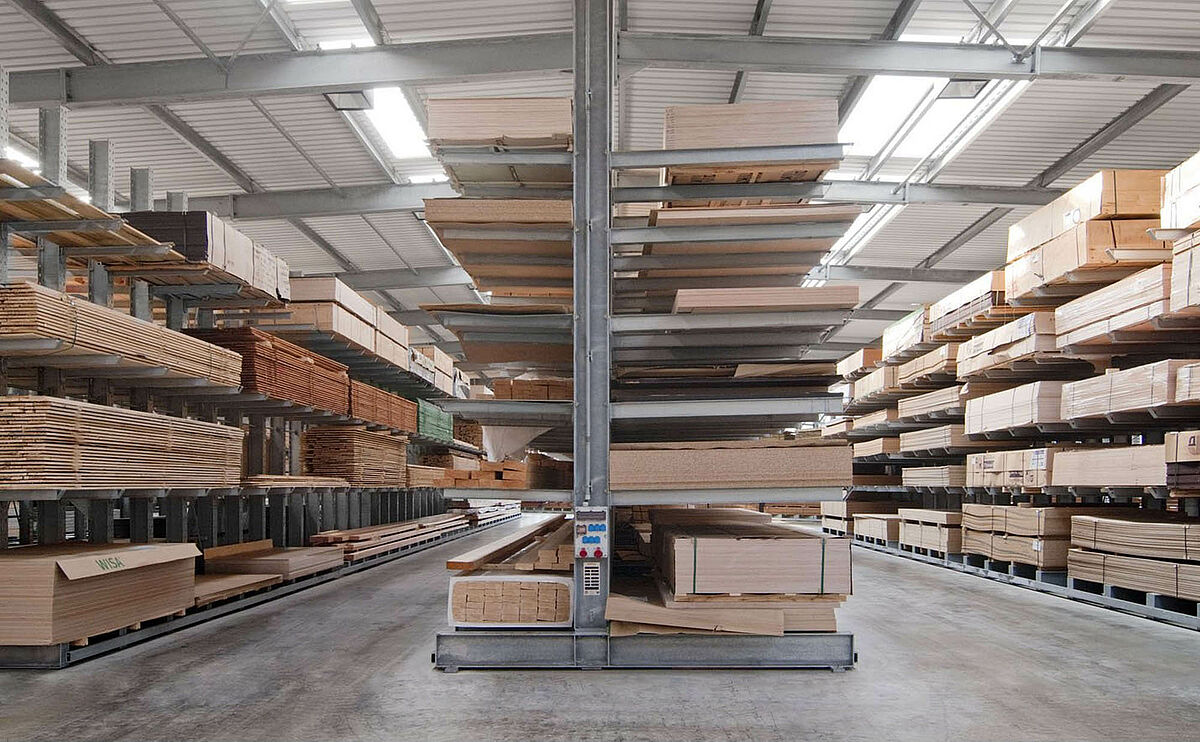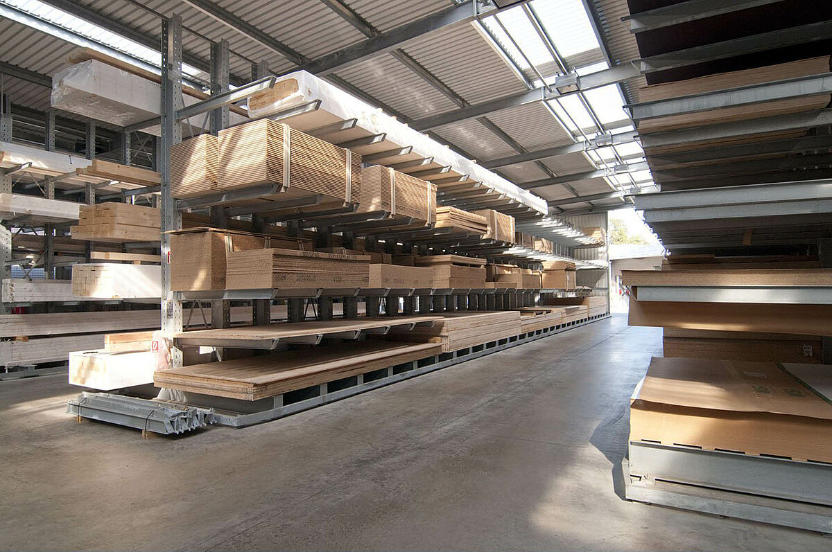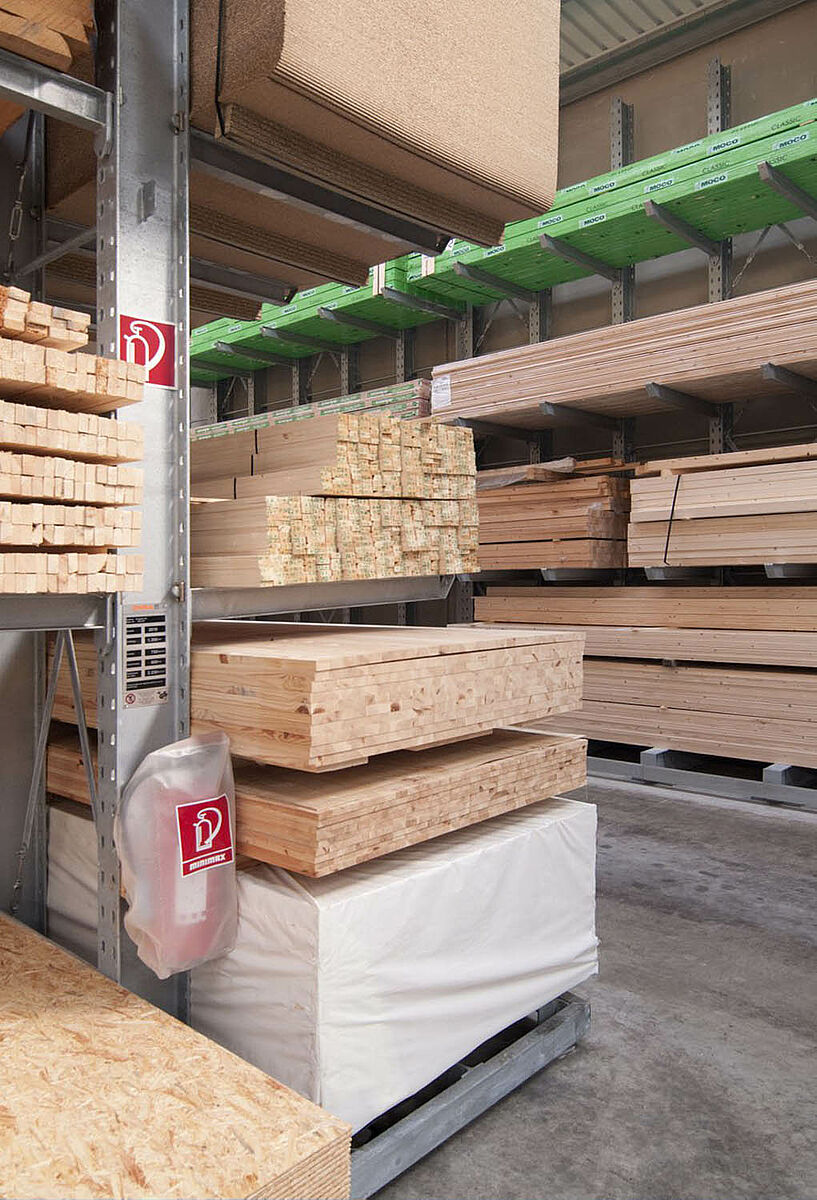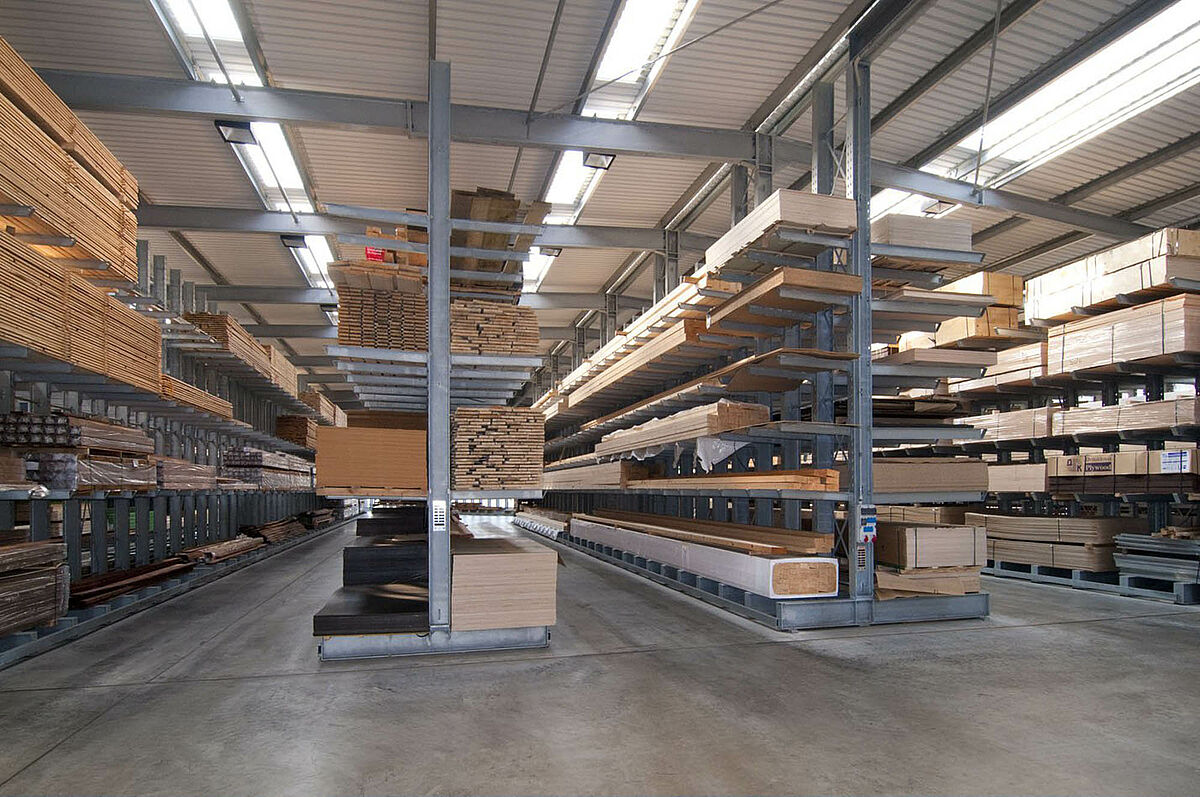 As a wholesale and retail company, Schyns GmbH, based in Siegburg, offers a comprehensive range of wood products for private and commercial customers – from solid construction timber to summer houses. The wood articles are stored in a rack warehouse which has been continually expanded over the last 20 years. Thus, during the course of time, a complete warehouse was built up from individual rack aisles and later duplicated, allowing the entire warehouse to grow with the company.