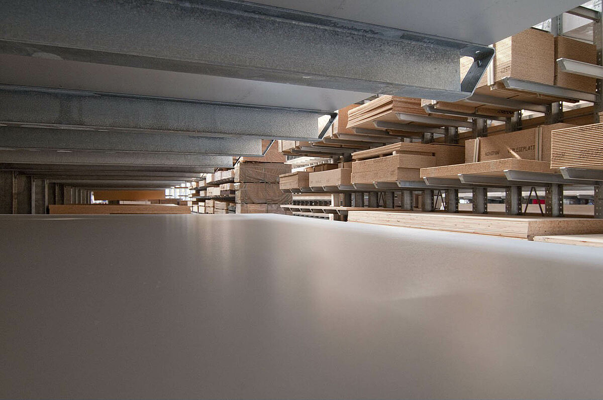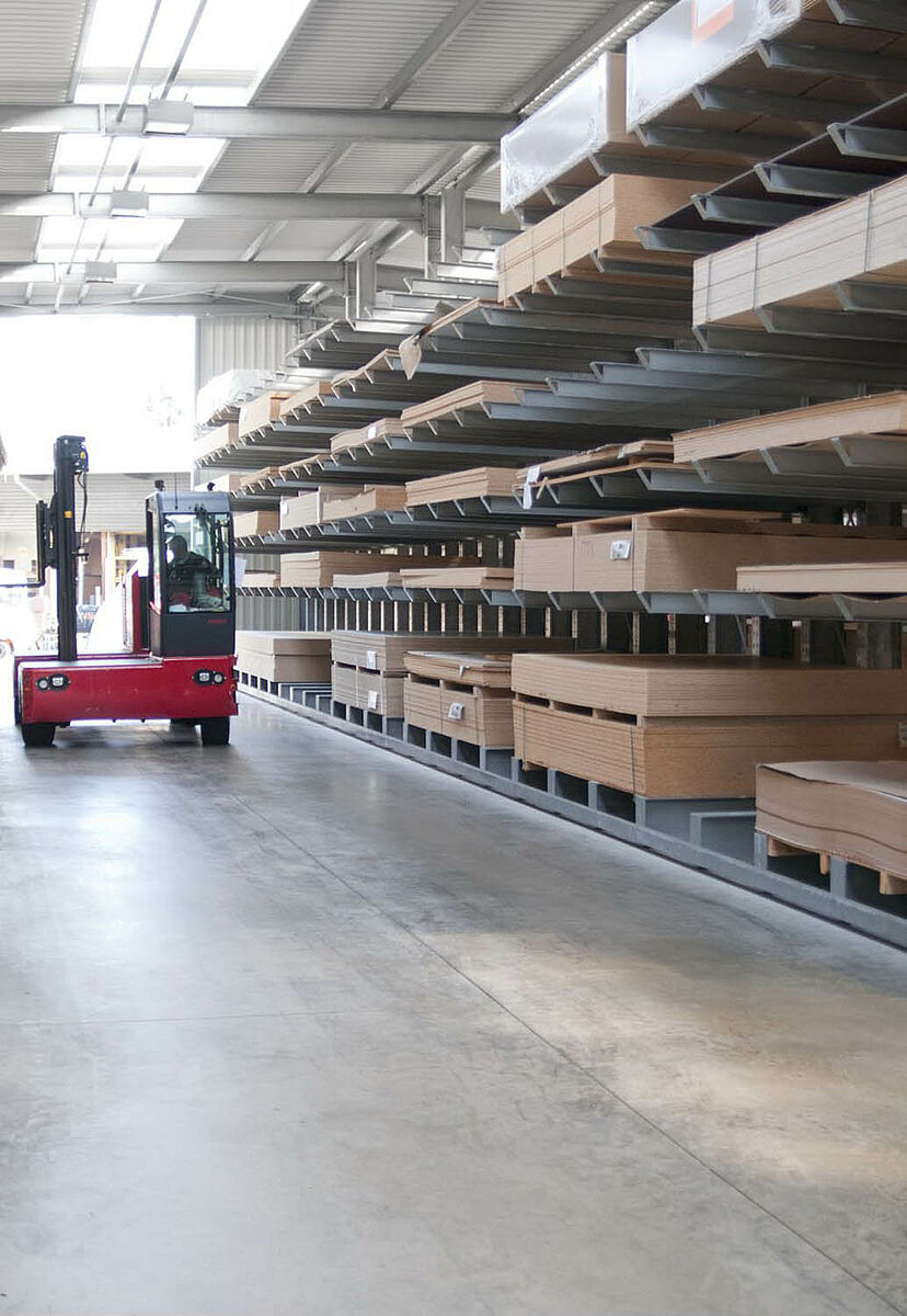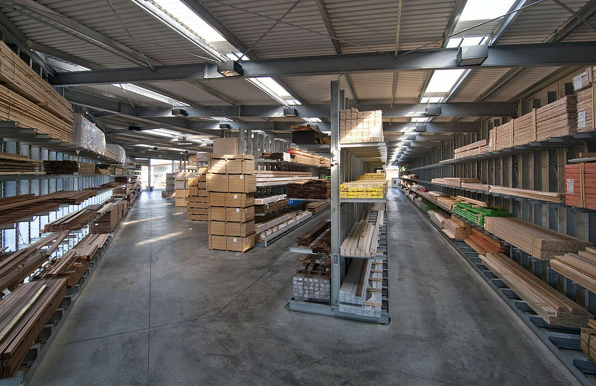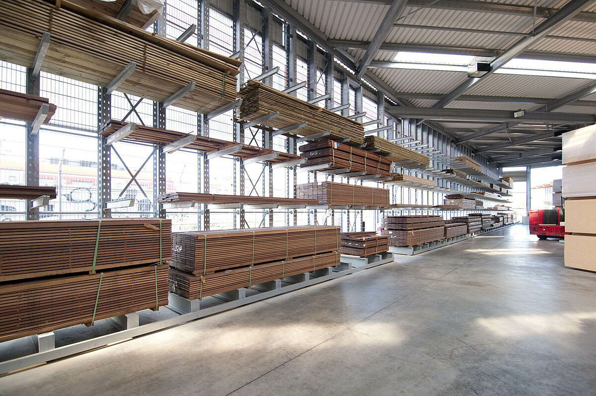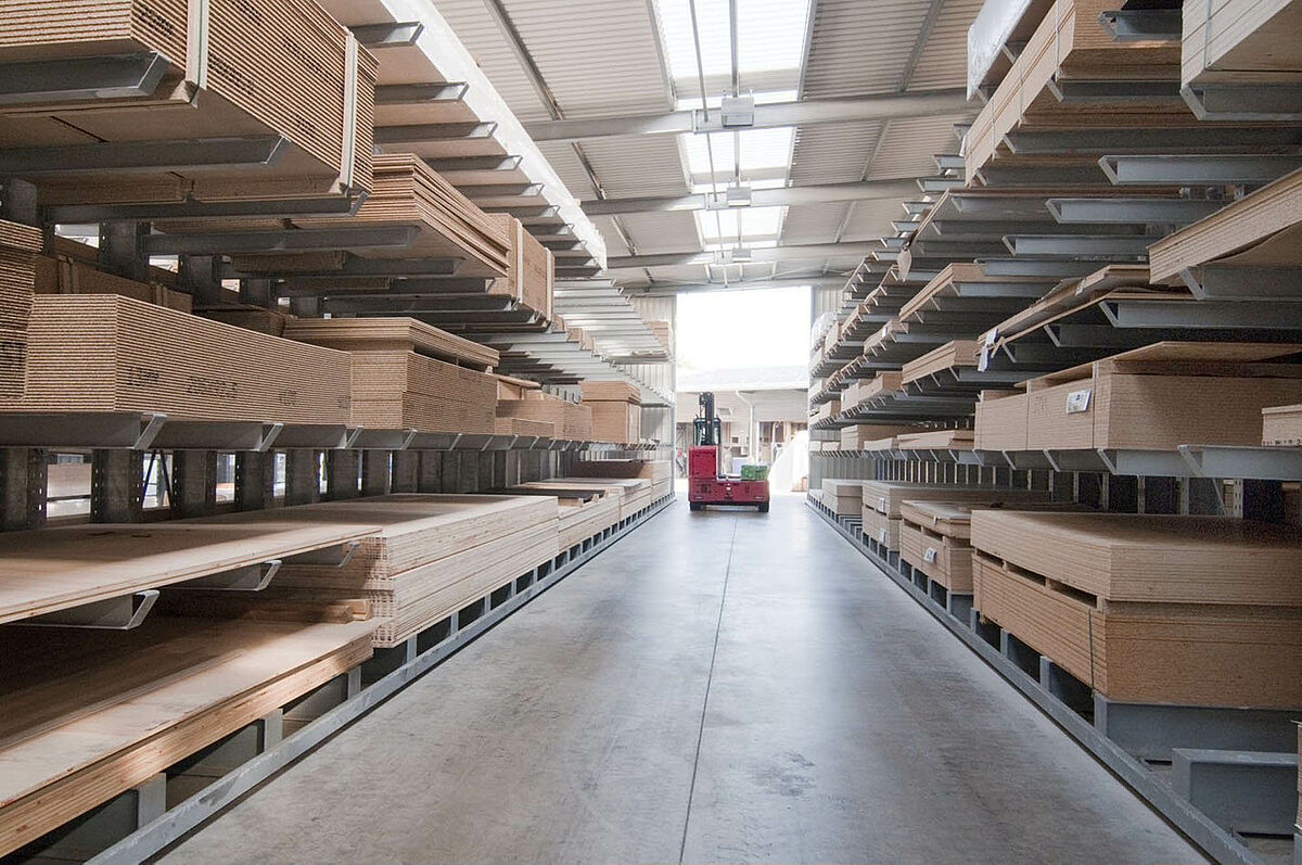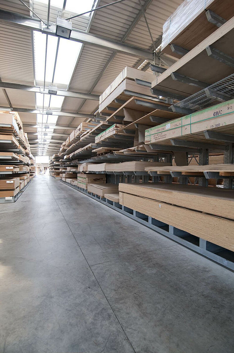 As a wholesale and retail company, Schyns GmbH, based in Siegburg, offers a comprehensive range of wood products for private and commercial customers – from solid construction timber to summer houses. The wood articles are stored in a rack warehouse which has been continually expanded over the last 20 years. Thus, during the course of time, a complete warehouse was built up from individual rack aisles and later duplicated, allowing the entire warehouse to grow with the company.