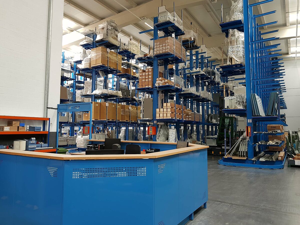 The Spanish company Seuner Fabricados installed a new OHRA racking system for the storage of lathe components. The central task was to create high storage capacities for differently dimensioned components, which are stored on company-specific load carriers. This was solved by 8.58-metre-high cantilever racks, which offer both continuous storage levels and space for long goods.