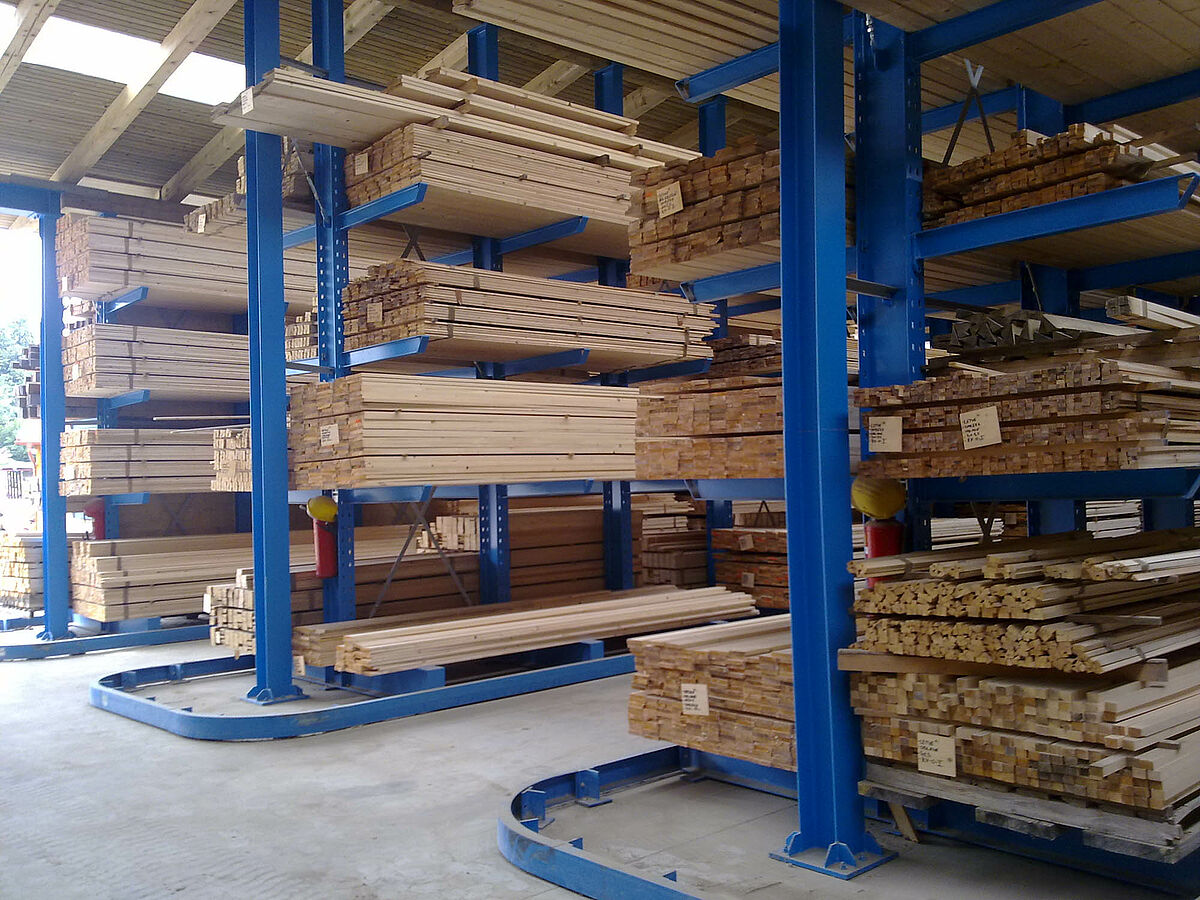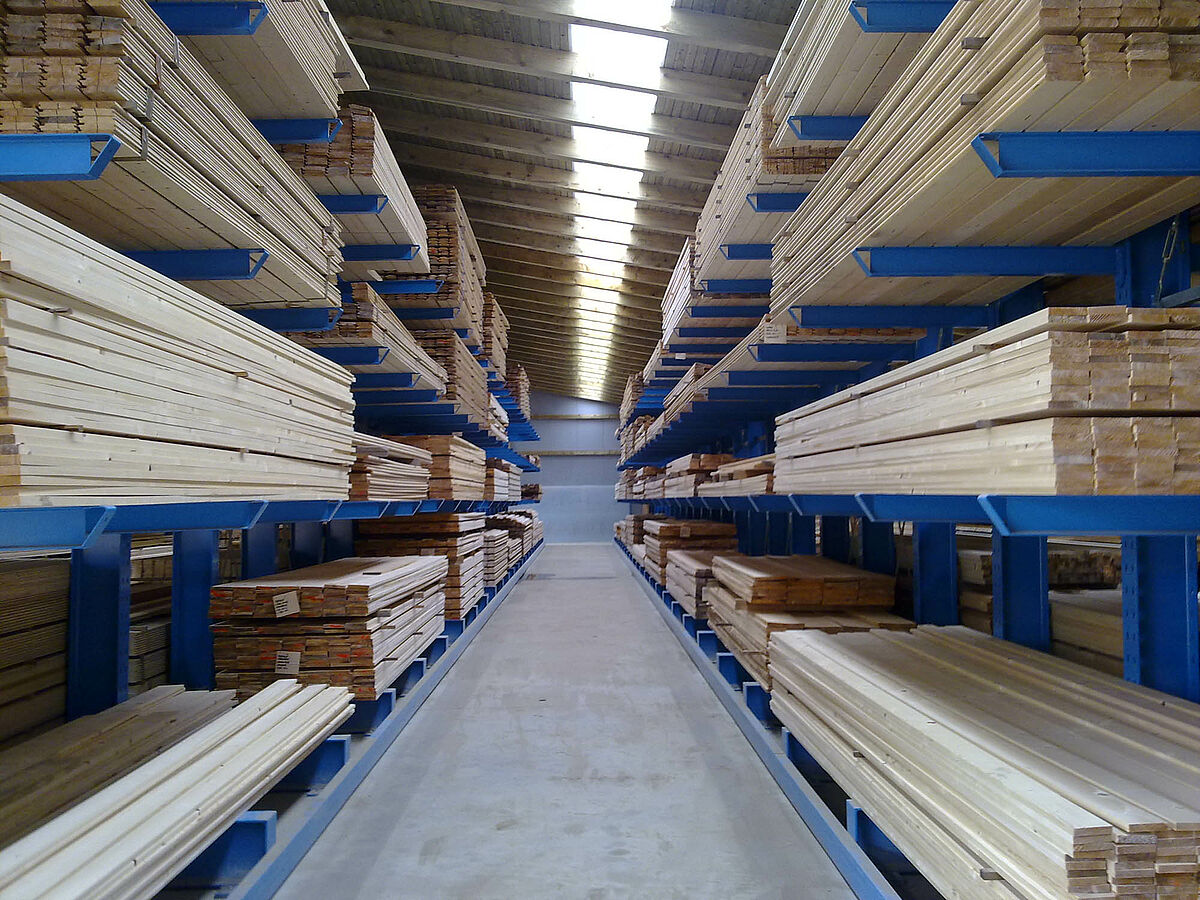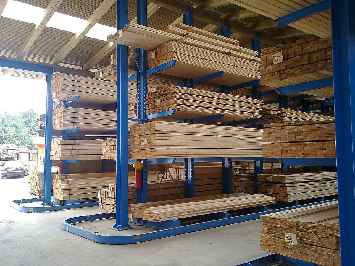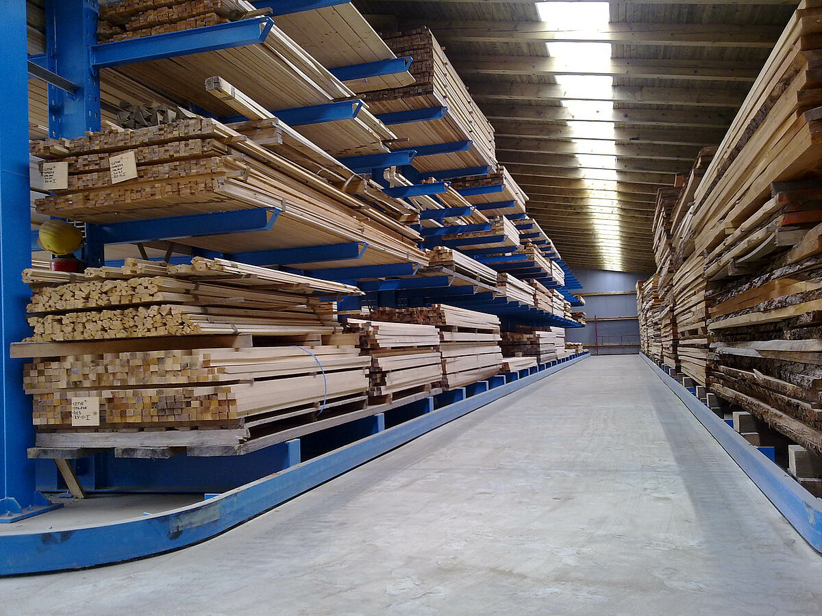 At the Slovenian company ŠVELC d.o.o., one of the largest sawmills in the region, cantilever racks from OHRA provide 50 percent more storage capacity in the wood warehouse. The three-aisle warehouse with a height of 5.7 meters is serviced by narrow-aisle forklift trucks enabling the stored material to be accessed quickly and safely.