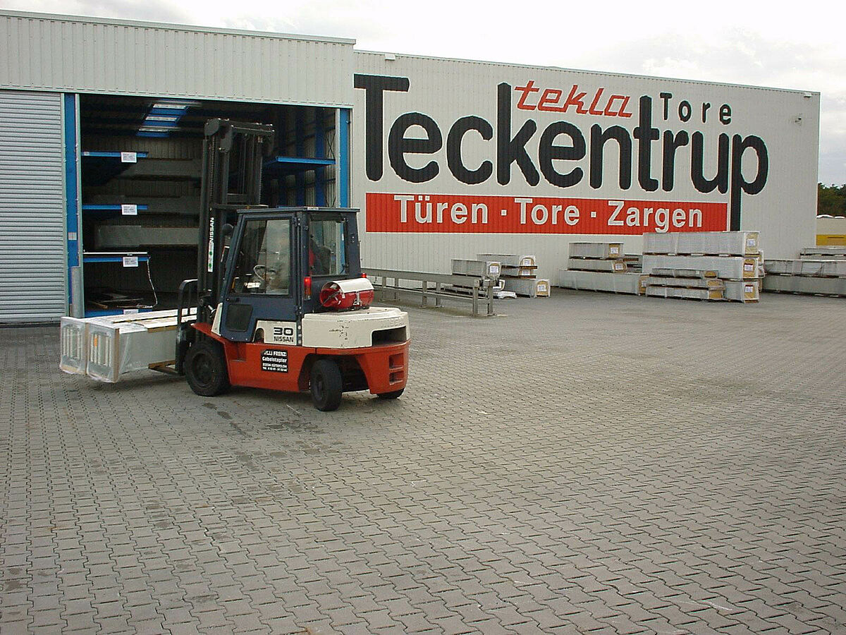 One of the leading manufacturers of gate-systems, company Tekla in Verl-Sürenheide, a longstanding OHRA-customer, has effected an interesting extension of his warehouse for finished products. In different locations in Germany, Tekla mainly produces the gates according to order or in small numbers. In Verl, the double-gates and sliding gates leave the modern production plant and are stored in OHRA racks to commission and supply them.