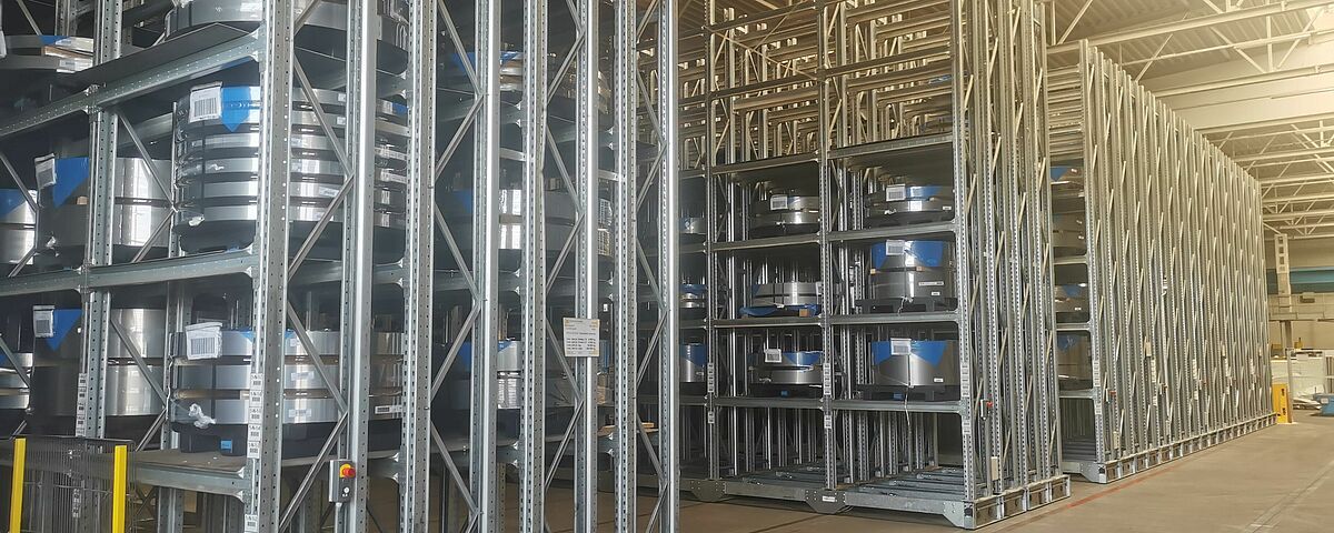 In Hungary, thyssenkrupp Materials Hungary is one of the leading trading companies for steel, light metal, non-ferrous metal, and plastic materials. To have direct access to a large number of different sheet metal coils with high storage capacity, the company installed pallet racks mounted on traversing carriages in 2005. But after 17 years in service, the supply of spare parts is proving increasingly difficult. Many components of the control and switchgear system of the mobile racking were discontinued or no longer available. However, as the steel structure still met all requirements, thyssenkrupp Materials Hungary decided to retrofit the racking system. As OHRA had already planned and installed a mobile cantilever racking system at thyssenkrupp Materials Hungary, the specialist for heavy-duty storage technology was also commissioned to modernise the coil mobile racking system - even though this was installed by a third-party supplier at the time.