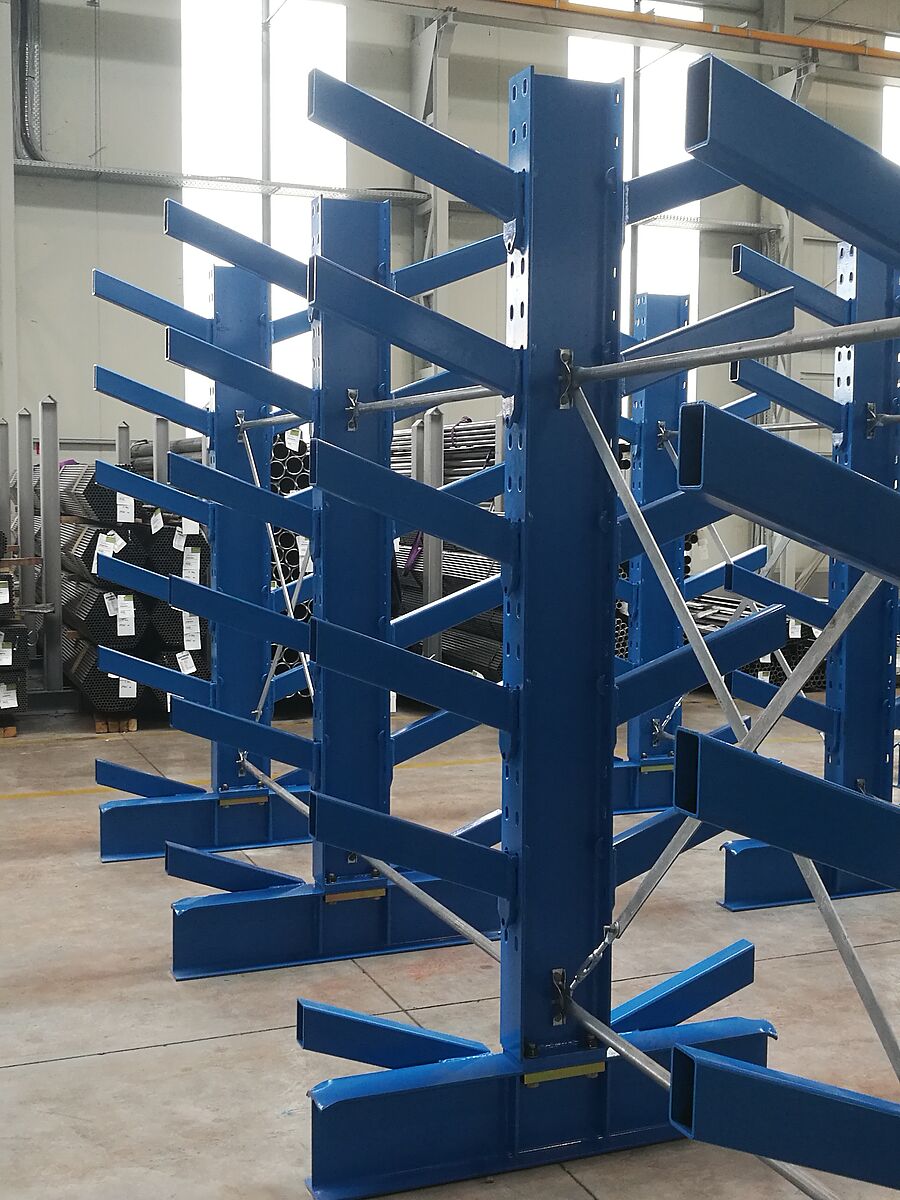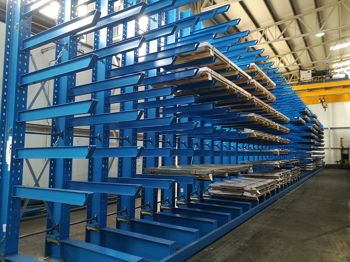 The company chose OHRA cantilever racks for its four-aisle warehouse: Here, the cantilever arms are secured by clips and move on impact – so damage to the goods and the rack itself are avoided, maintenance is minimized. In addition, the OHRA racks, thanks to their construction of solid-walled, hot-rolled steel profiles, offer a high load-bearing capacity. The 6-metre high racks installed have ten storage levels. Each of the 1,500-millimetre-long cantilever arms can carry up to 1.400 kilograms. Guide rails on the feet allow the use of a narrow-aisle truck – this way the area utilization of the warehouse was improved and the storage capacities significantly increased.