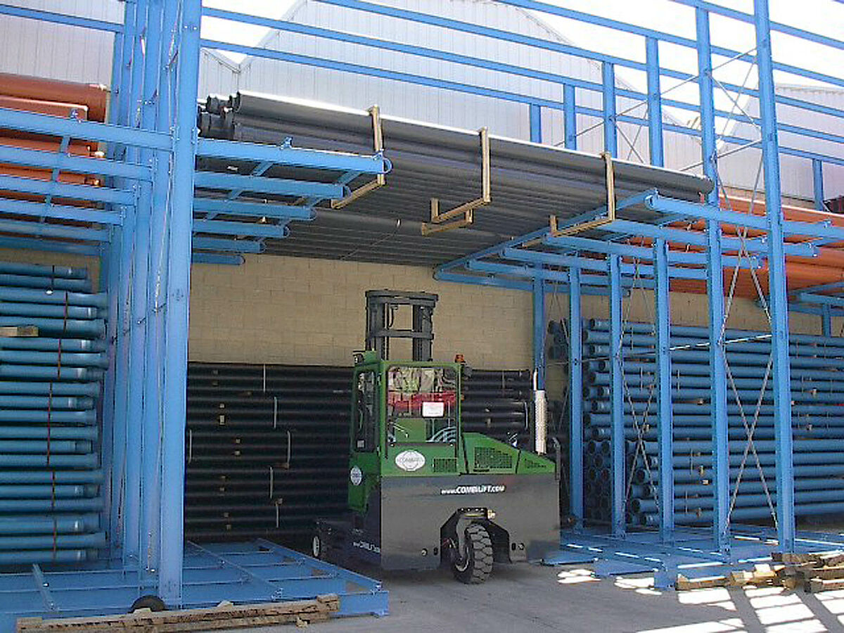 The growing need and growing market in Spain, the existing warehouse on the property of the customer was not sufficient anymore. Due to the "chaotic" storage, which was mainly of PVC and metal pipes, the base of the open ground was quickly spoilt. The tube bundles were scattered all over the storage facility and one had to go inside several times and search for the required grades. This loss of time during maneuvering of the product soon became apparent. During a year the lost time grew to several thousand hours and have even led to the fact that orders have been canceled because the customer was not able to overcome the logistical challenge anymore.