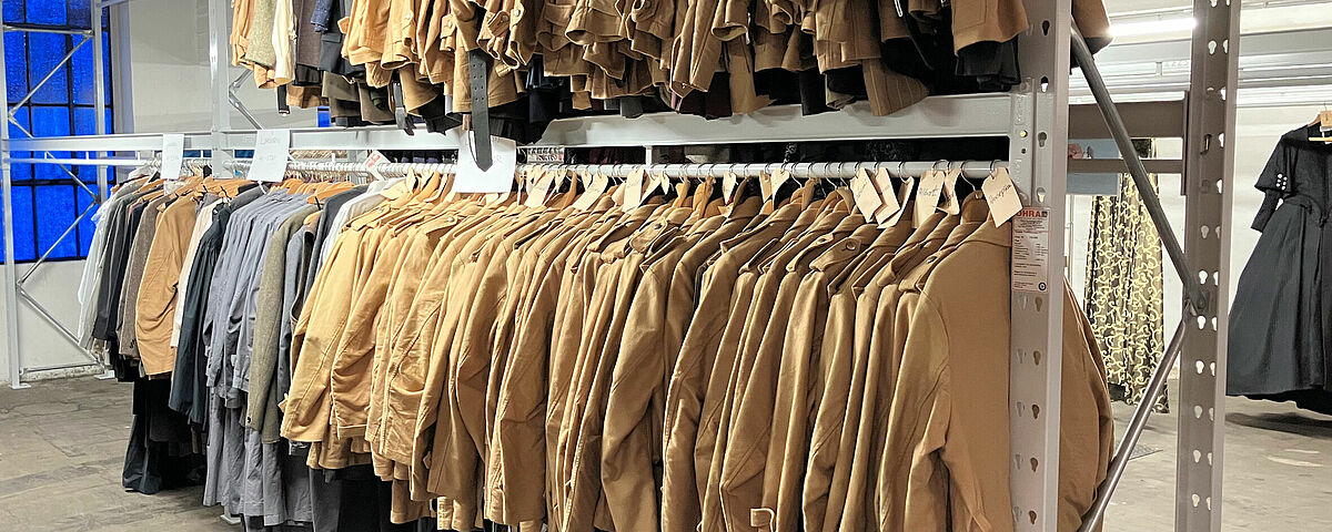 The Städtische Bühnen Frankfurt theatre company has a collection of around 40,000 costumes. The Städtische Bühnen Frankfurt theatre has now expanded its collection of props with a special construction based on pallet racks for one section, the storage of repertoire costumes. Clothes rails are mounted on the shelf supports so that the costumes can be stored hanging on coat hangers. By using the shelves, the costume department can now store costumes more effectively in the expanded storage area.