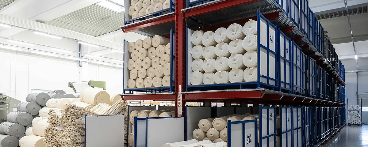 trigema, Germany’s largest manufacturer of sport and leisure clothing, has significantly increased its production by converting floor stacking to rack storage. To achieve this, OHRA installed cantilever and pallet racking, providing temporary storage for the fabrics produced by the company’s own knitting machines before they are sent to the finishing department for processing. Metal gratings enable the textiles to be stored in different conditions, regardless of format or storage aids. Thanks to the OHRA racking solutions, trigema has increased production efficiency by 5 per cent.